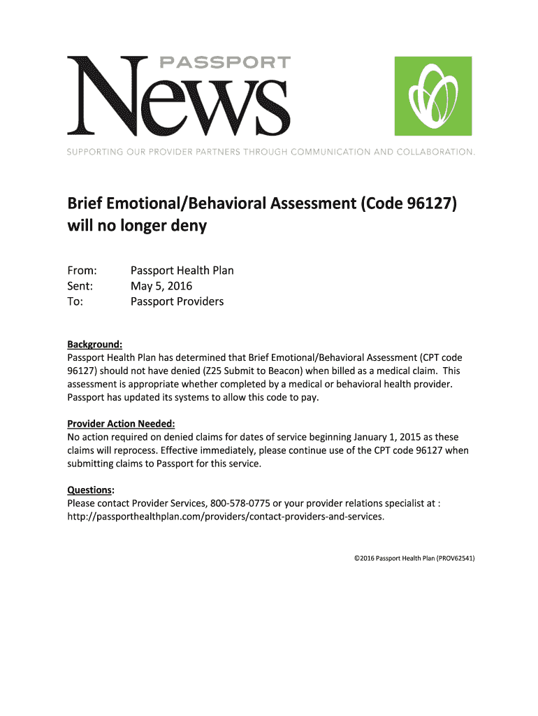Get the free Brief Emotional/Behavioral Assessment (Code 96127)