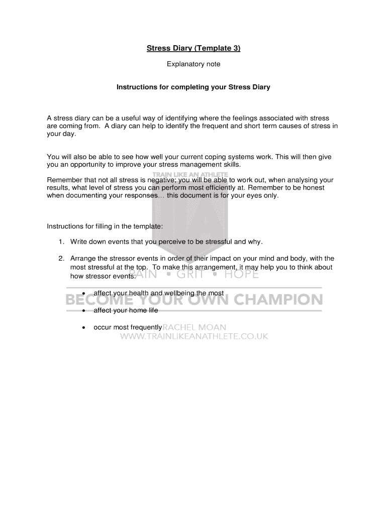 Employees who have been instructed by their employer to keep track of their stress levels are required to file stress diary template 3.