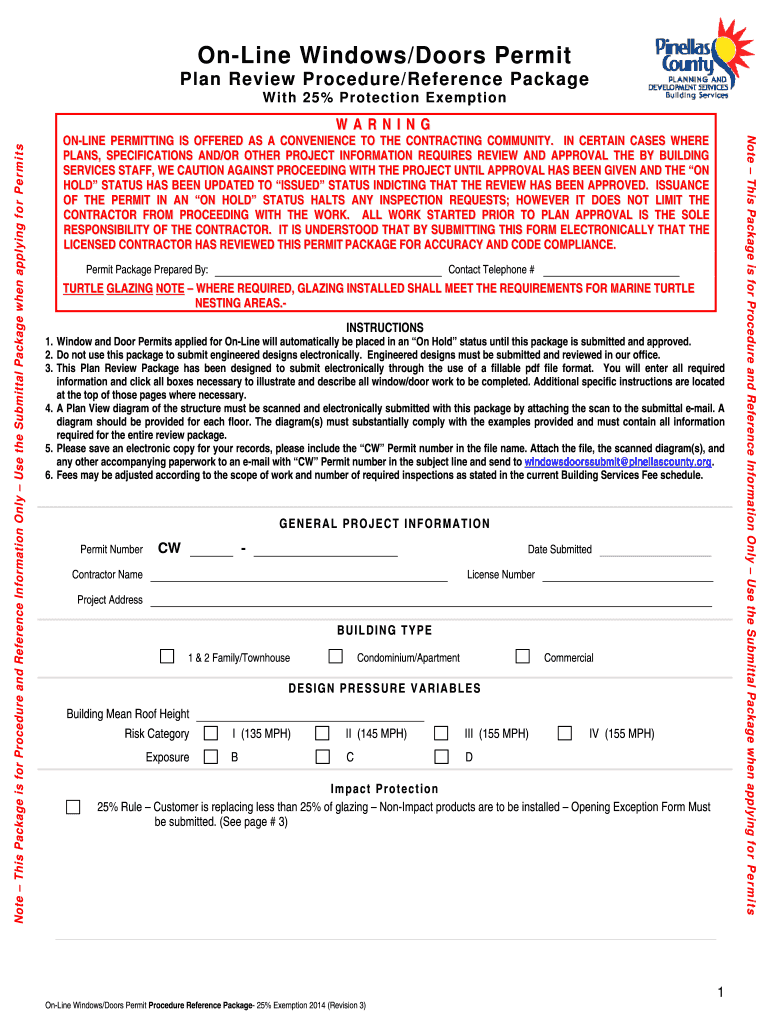 Submission Methods and Delivery of the Florida Windows/Doors Permit with 25% Exemption