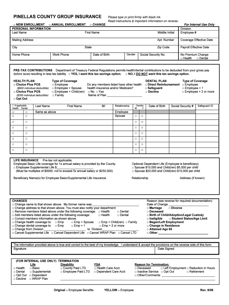 Sample Completed Pinellas County Group Insurance Enrollment Form