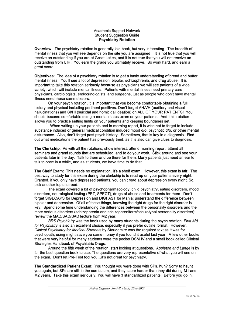 Overview: The psychiatry rotation is generally laid back, but very interesting. The breadth of