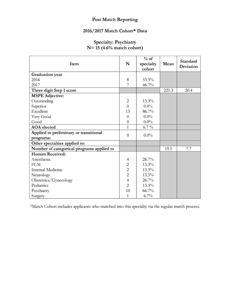 2016/2017 Match Cohort* Data