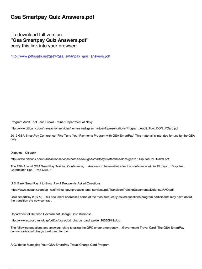 GSA Smart pay Quiz Answers. Photo download full version “GSA Smart pay Quiz Answers.pdf copy this link into your browser: http://www.pdfspath.net/get/4/gsa smart pay quiz answers. Deprogram Audit