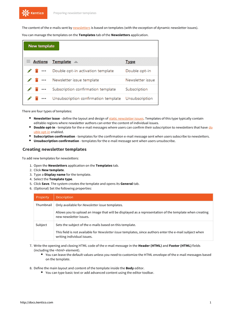 Preparing newsletter templates content of the emails sent by newsletters is based on templates (except dynamic newsletter issues). You can manage the templates on the Templates tab of the Newsletters