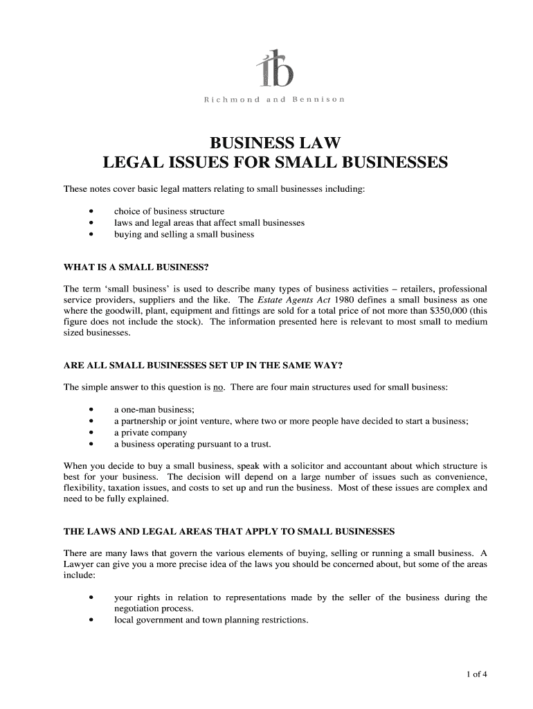 Get the free LEGAL ISSUES FOR SMALL BUSINESSES