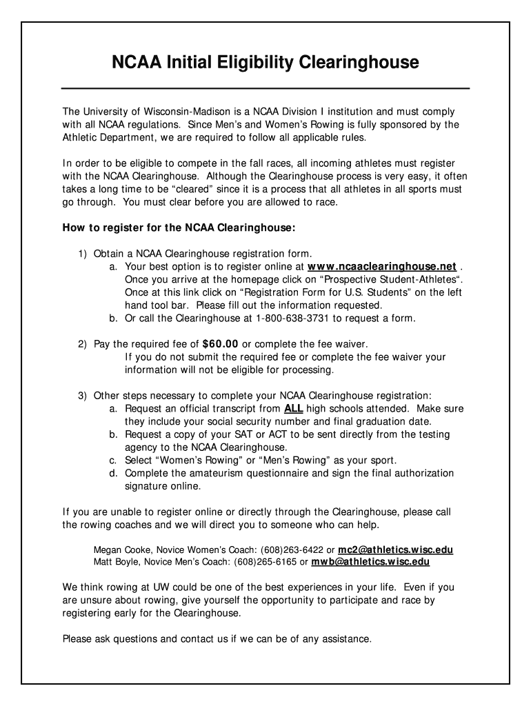 Email, fax, or share your ncaa initial eligibility clearinghouse form via URL. You can also download, print, or export forms to your preferred cloud storage service.