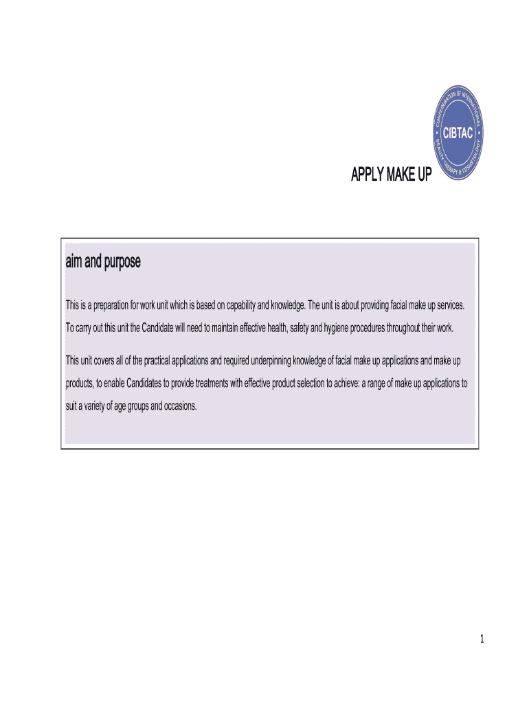 This is a preparation for work unit which is based on capability and knowledge. The unit is about providing facial make up services.