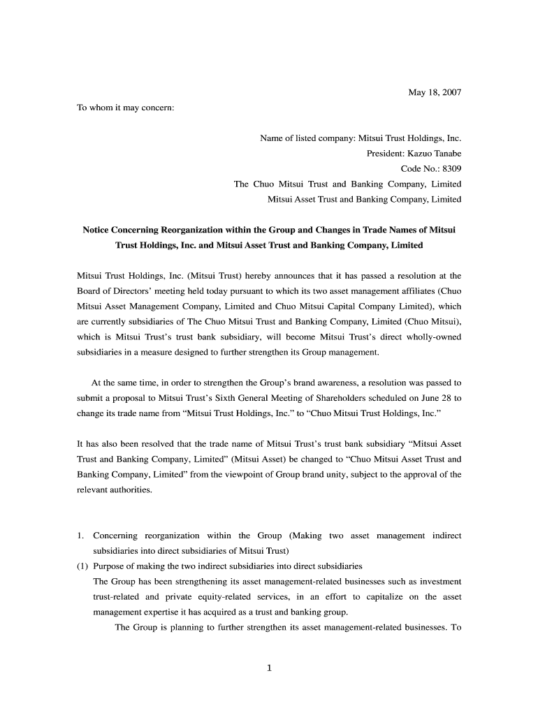 Get the free Name of listed company: Mitsui Trust Holdings, Inc
