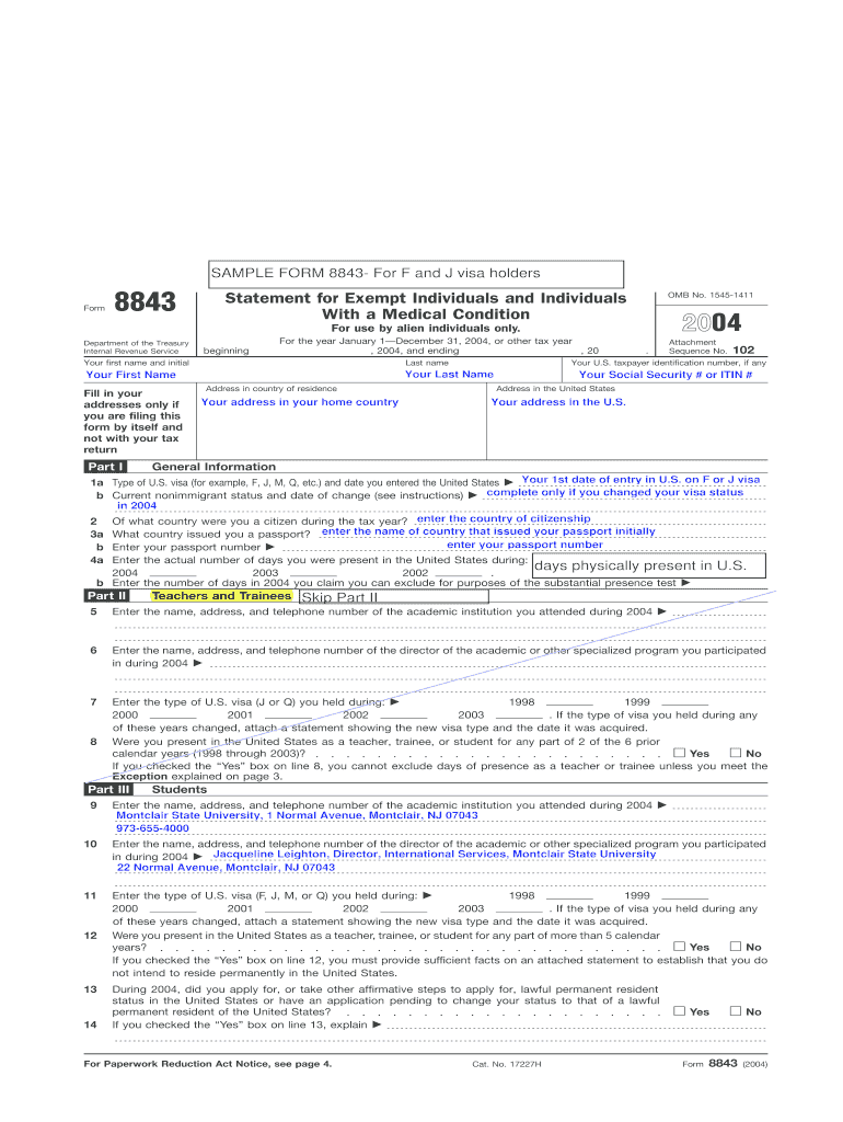 Certain categories of individuals are required to complete IRS Form 8843, including: