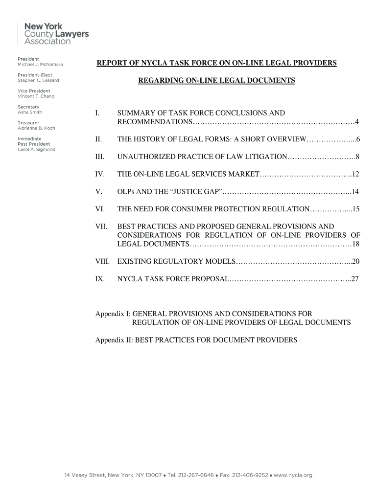 Get the free REPORT OF NYCLA TASK FORCE ON ON-LINE LEGAL PROVIDERS