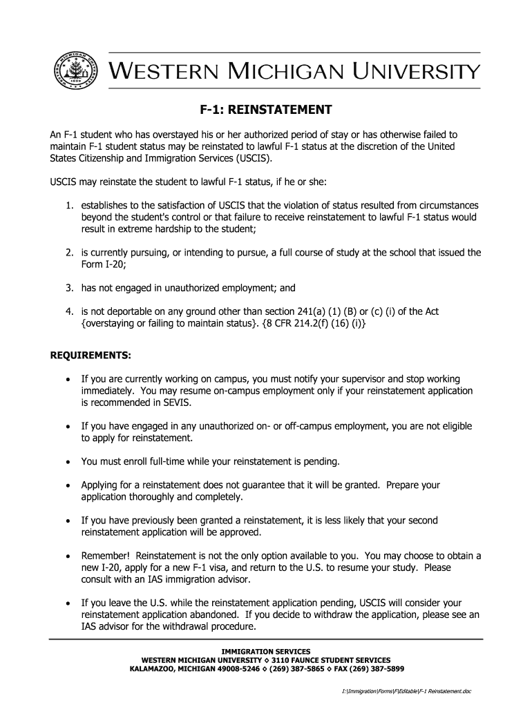 Get, Create, Make and Sign f-1 reinstatement