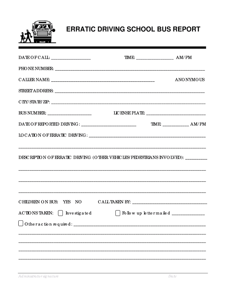 Erratic Driving School Bus is not the form you're looking for?Search for another form here.