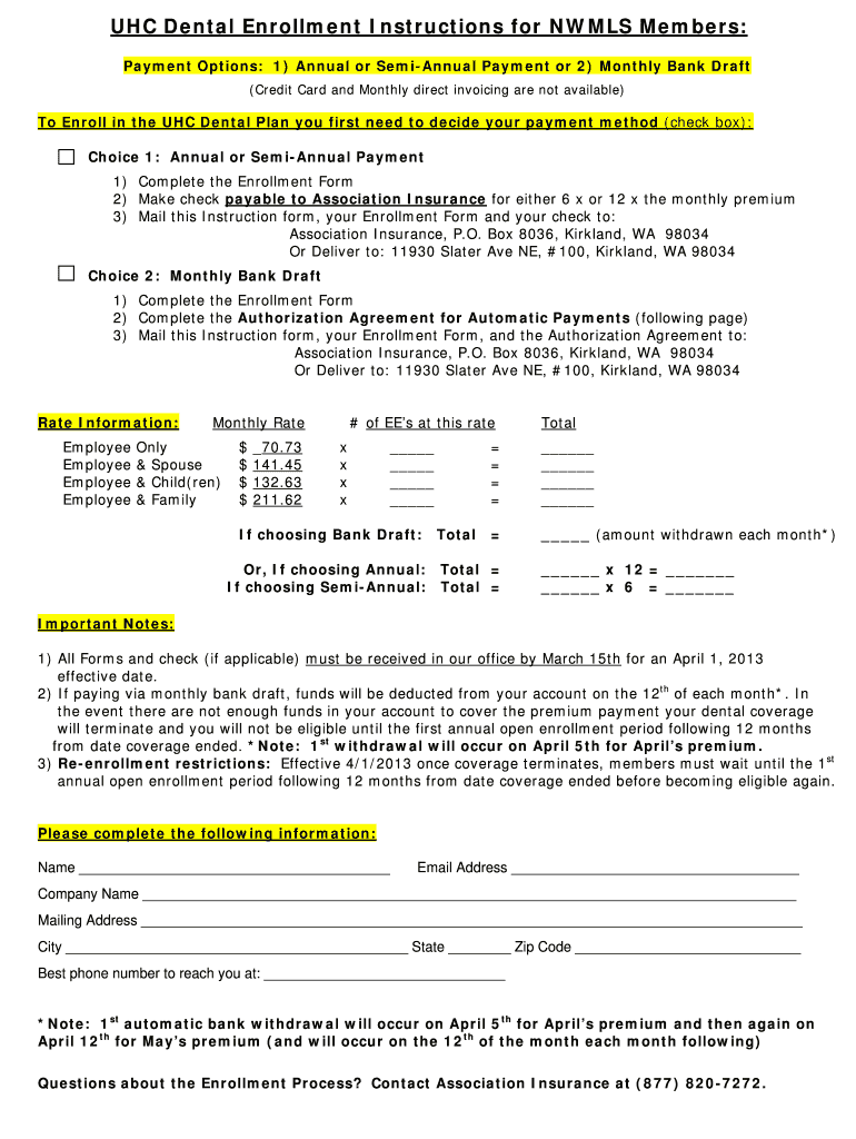 Get the free Payment Options: 1) Annual or Semi-Annual Payment or 2) Monthly Bank Draft