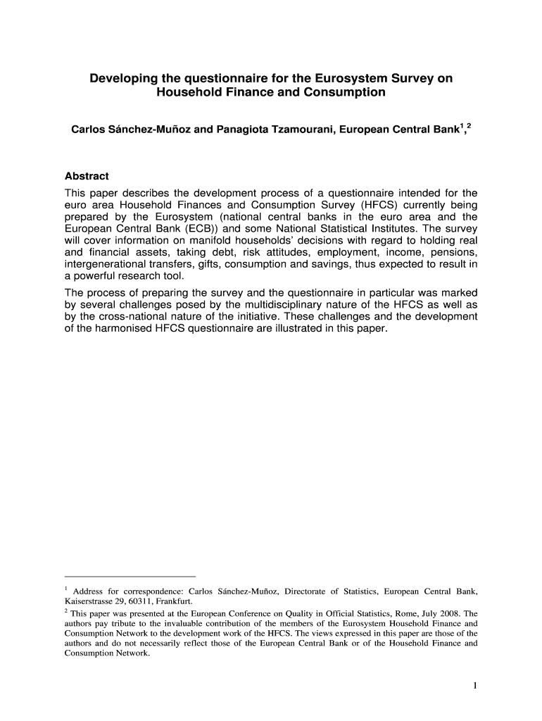 Get the free Developing the questionnaire for the Eurosystem Survey on