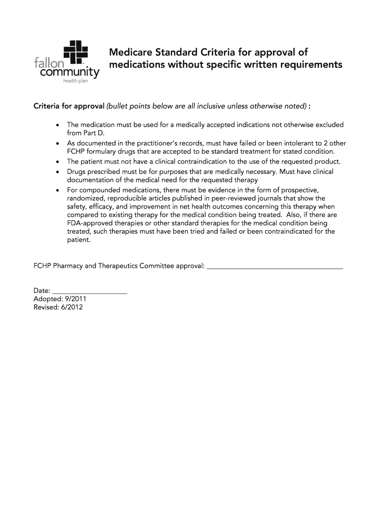Get the free Medicare Standard Criteria for approval of
