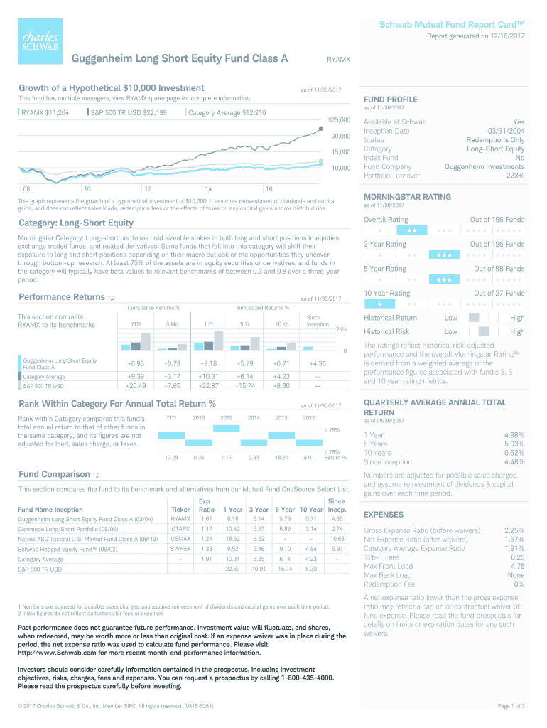 Schwab Mutual Fund Report Card Report generated on 12/16/2017Guggenheim Long Short Equity Fund Class A Growth of a Hypothetical $10,000 InvestmentRYAMXas of 11/30/2017This fund has multiple managers,