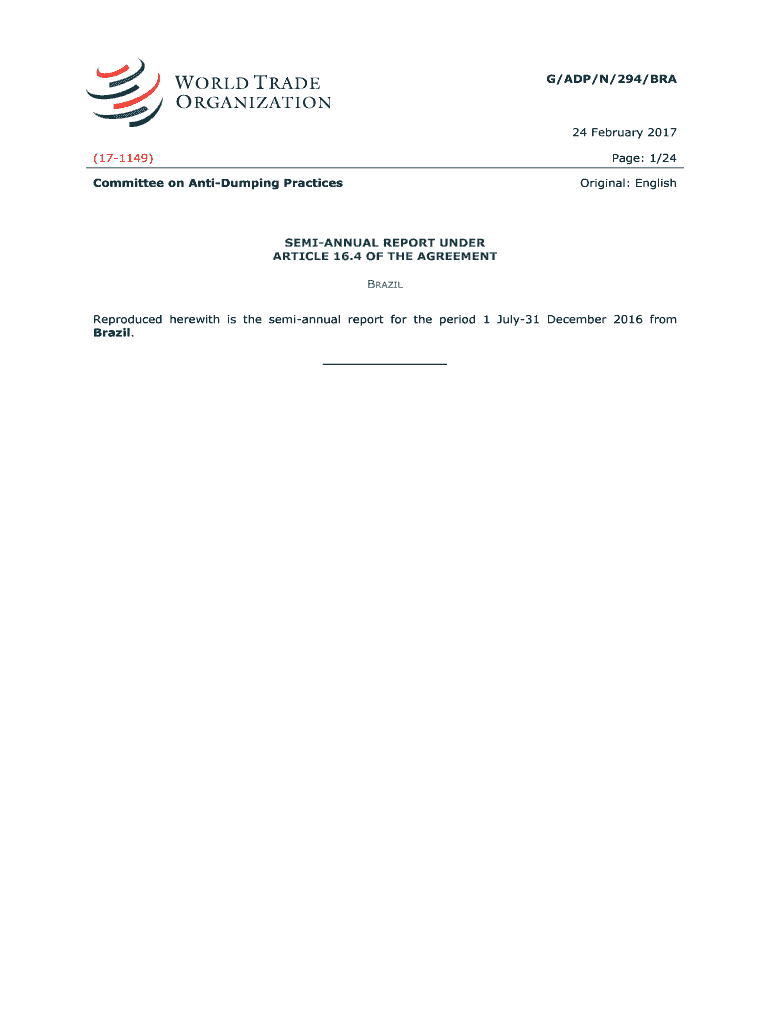 G/ADP/N/294/BRA24 February 2017 (171149)Page: 1/24Committee on Antiquing PracticesOriginal: EnglishSEMIANNUAL REPORT UNDER ARTICLE 16.4 OF THE AGREEMENT BRAZIL Reproduced herewith is the semiannual