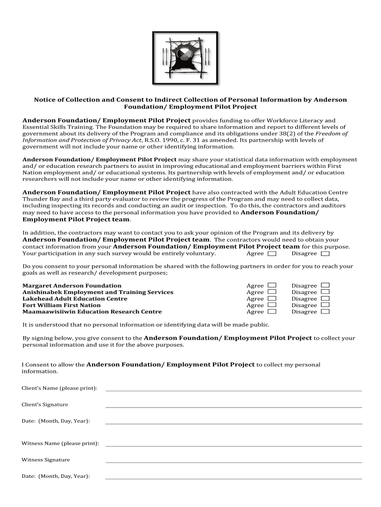 Get the free Notice of Collection and Consent to Indirect Collection of Personal Information by A...