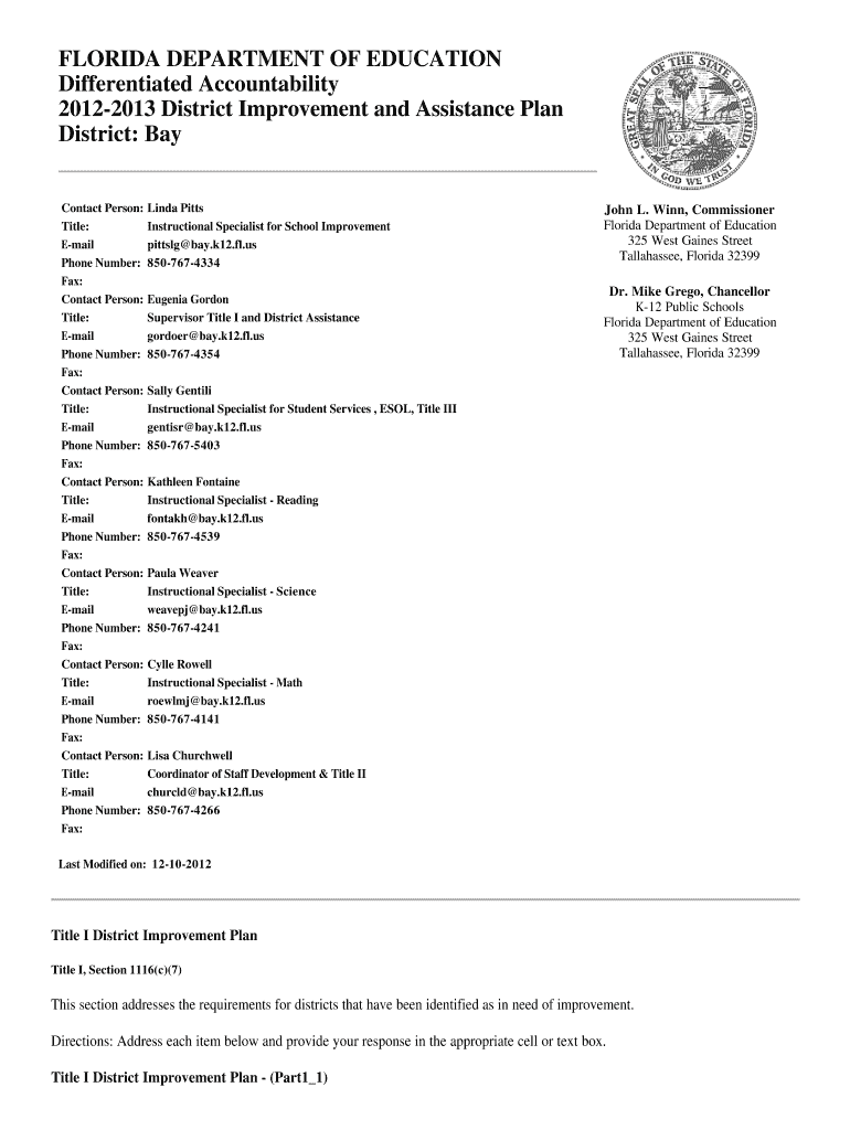 20122013 District Improvement and Assistance Plan
