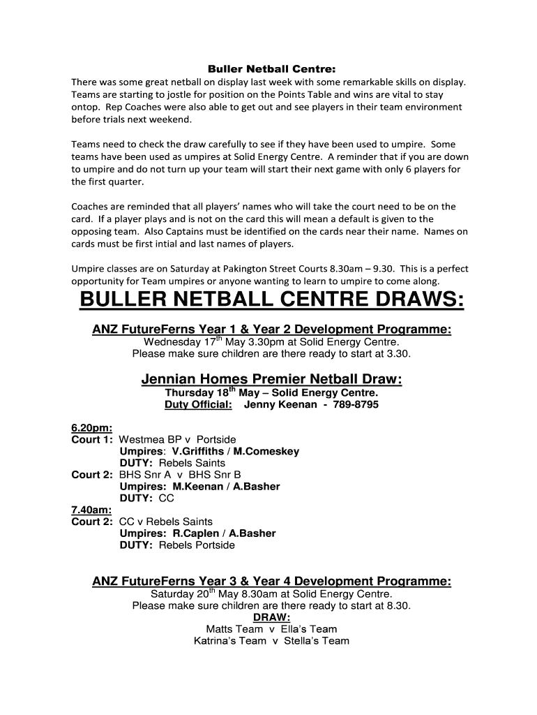 Attend any further instructions or orientation sessions as directed by Buller Netball Centre.