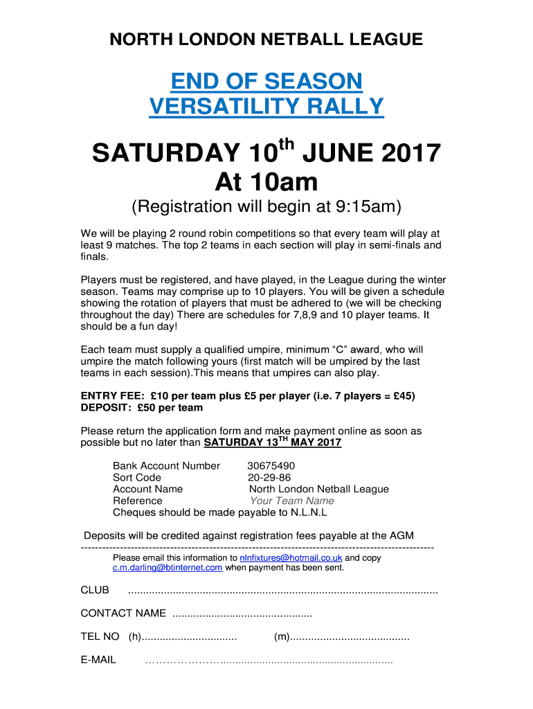 Fill out your north london netball league online with pdfFiller!