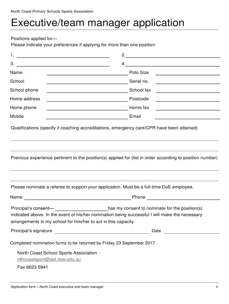 North Coast Primary Schools Sports AssociationApplication form 2018 PSA