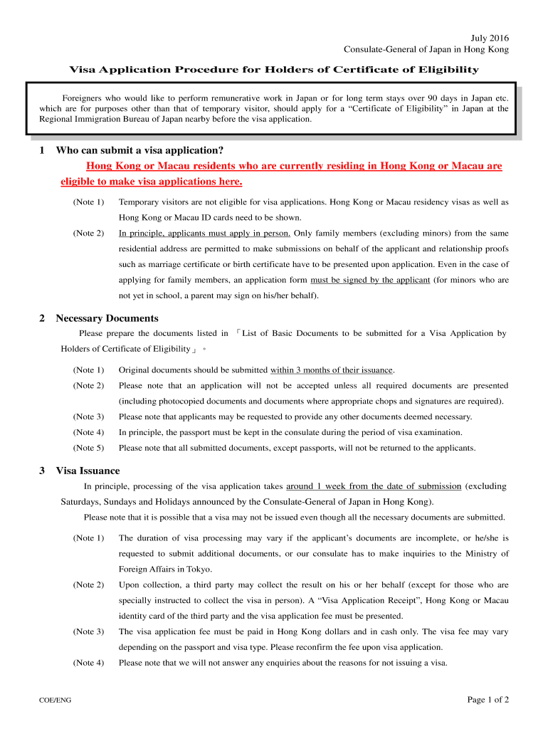 Visa Application Procedure for Holders of Certificate of Eligibility