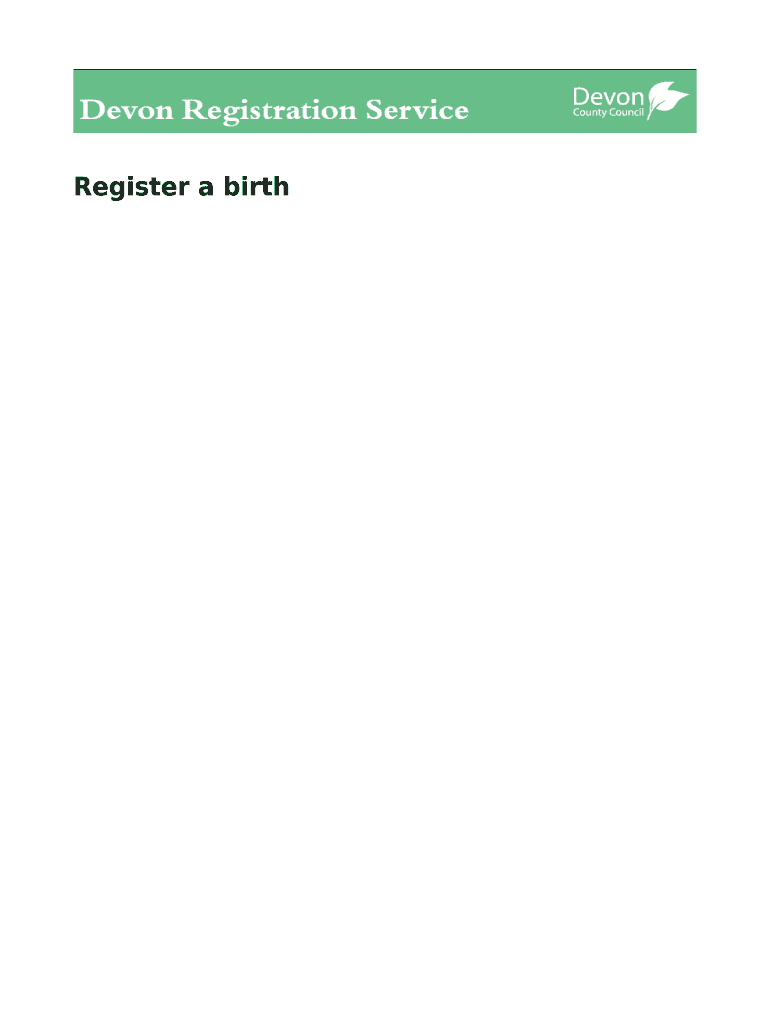 Register a birthhttps://new.devon.gov.uk/registrationservice/ Created on 01/11/17. For latest version please see https://new.devon.gov.uk/registrationservice/guide/registerabirth1Contents Introduction