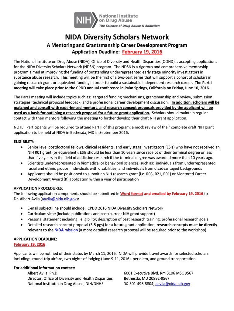 Fill out your nida diversity scholars network online with pdfFiller!
