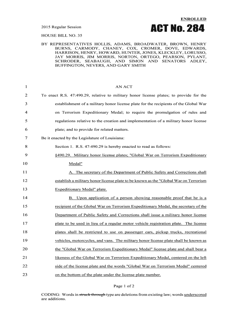 ENROLLED ACT No. 2842015 Regular Session