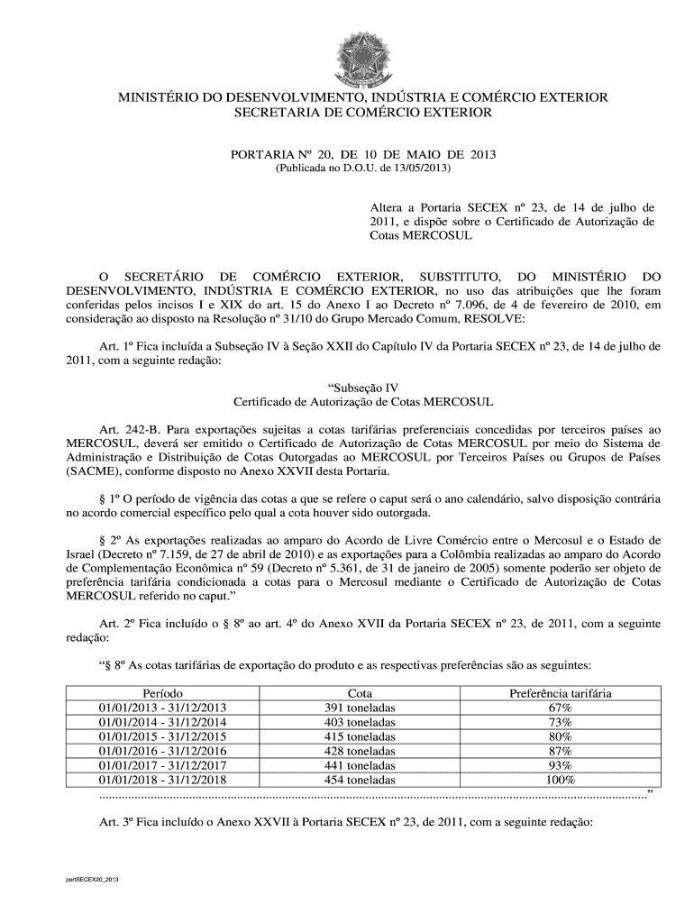 Get the free O SECRETRIO DE COMRCIO EXTERIOR, SUBSTITUTO, DO MINISTRIO DO