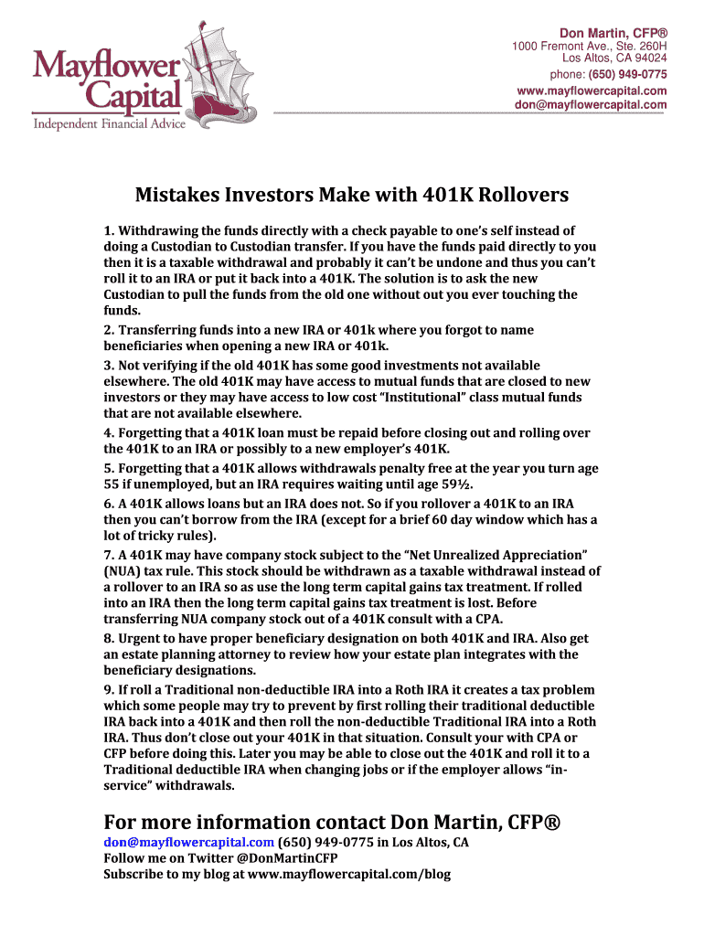 don×mayflower capital. Committees Investors Make with 401K Rollovers