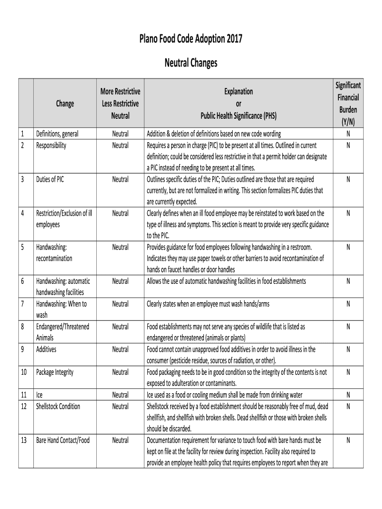 Plano Food Code Adoption 2017