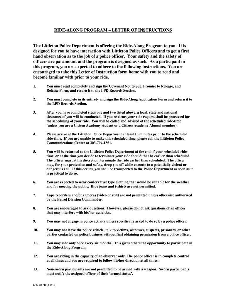 Get the free RIDE-ALONG PROGRAM LETTER OF INSTRUCTIONS