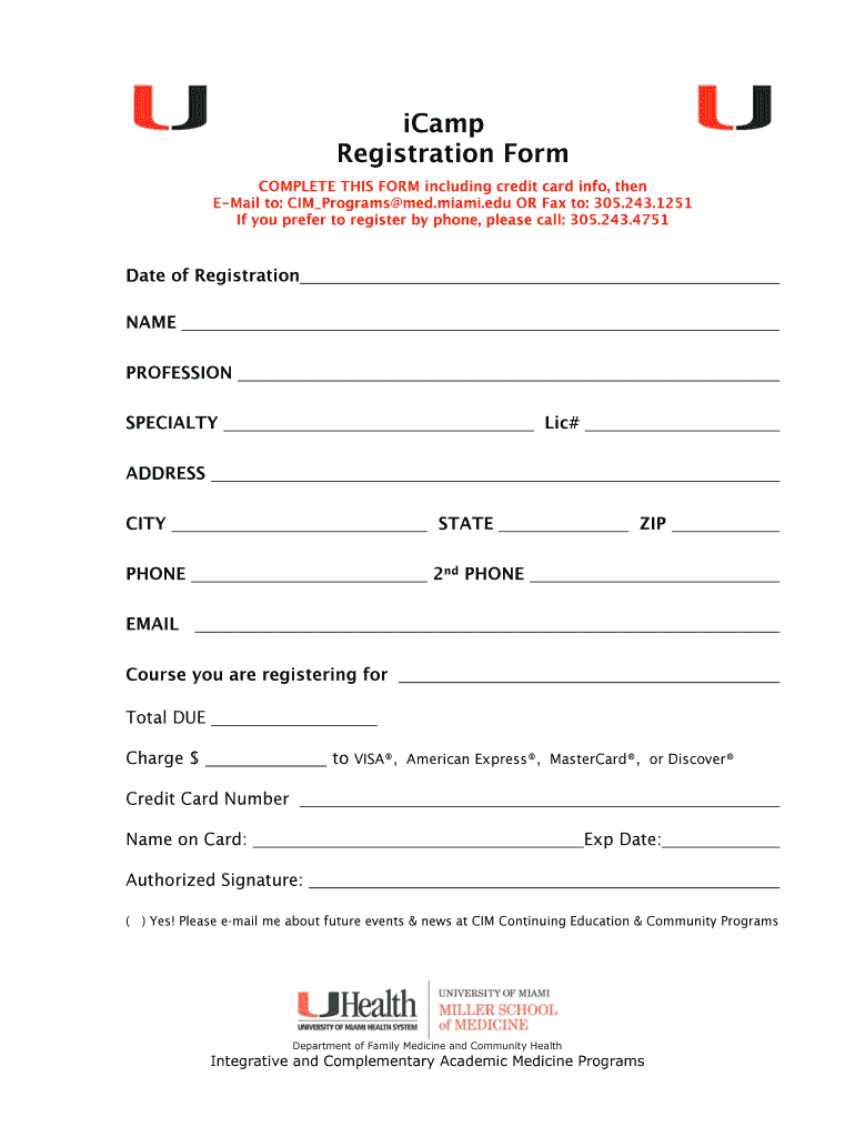 Essential fields such as 'Credit Card Number', 'Name on Card', 'Exp Date', and 'Authorized Signature'.