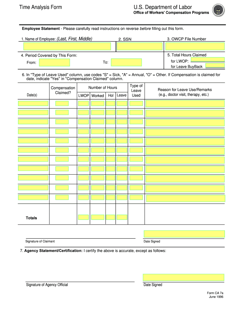 The Employee Statement Form CA-7A is designed to streamline the process for employees claiming FECA compensation. It offers several advantages not only to employees but also to agency officials.