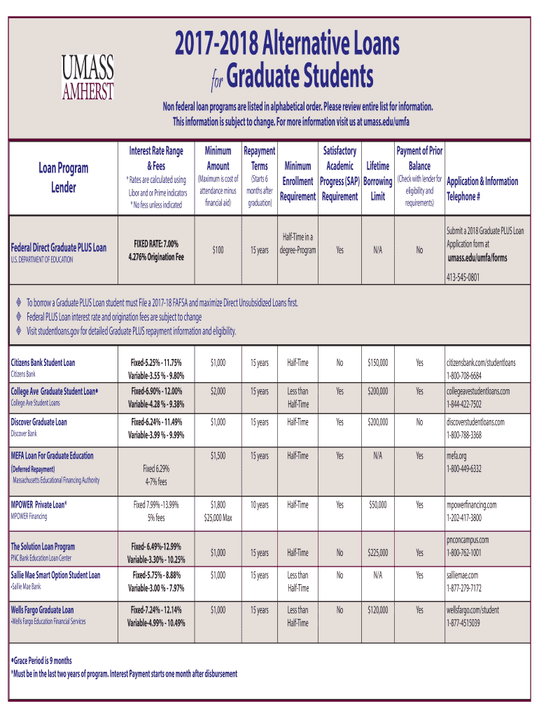 20172018 Alternative Loans for Graduate Students Non-federal loan programs are listed in alphabetical order. Please review entire list for information. This information is subject to change. For more