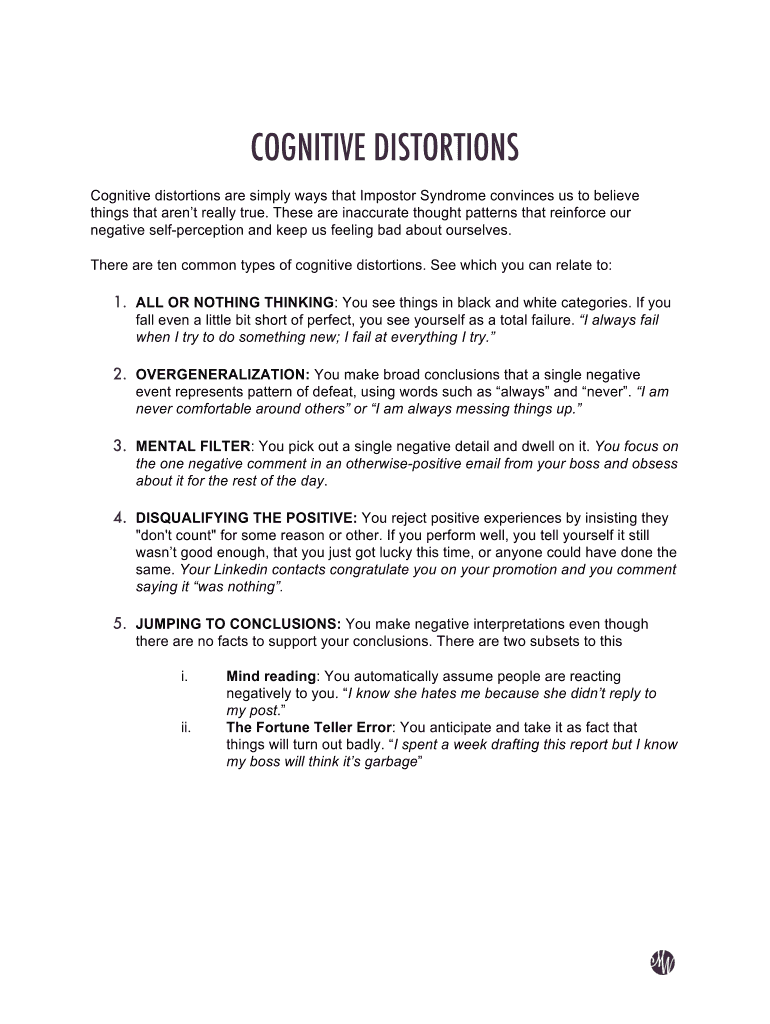 COGNITIVE DISTORTIONS are simply ways that Impostor Syndrome convinces us to believe