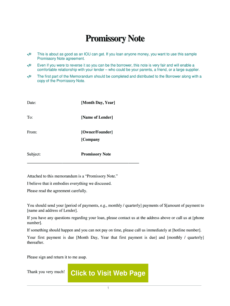 Promissory Note This is about as good as an IOU can get. If you loan anyone money, you want to use this sample Promissory Note agreement. Even if you were to reverse it, so you can be the borrower,