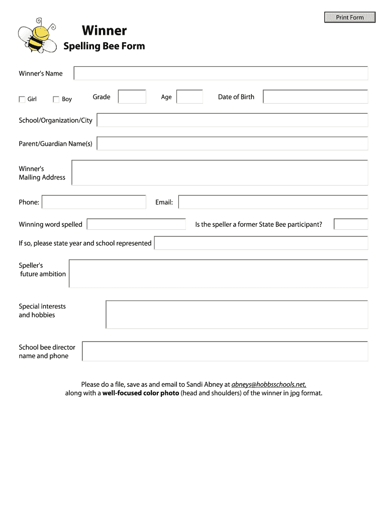Get the free Spelling Bee Winner Form