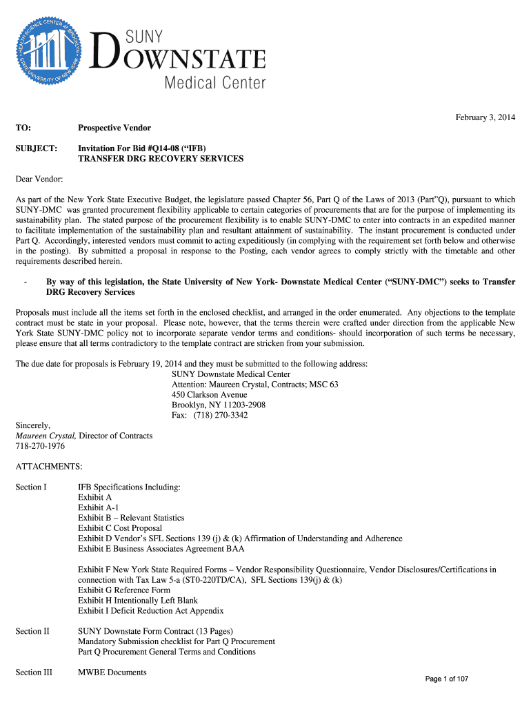 Get the free detail IFB Q14-08 - SUNY Downstate Medical Center - downstate