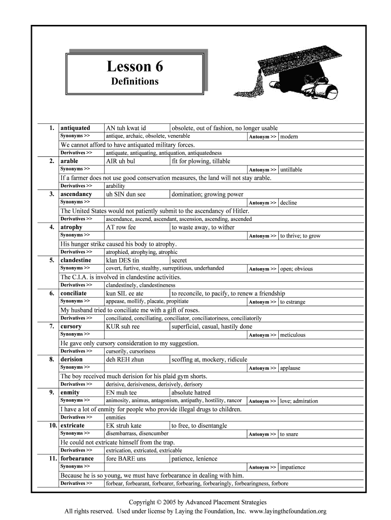 Lesson 6 Definitions1. Antiquated Synonyms AN tub quit I'd obsolete, out of fashion, no longer usable antique, archaic, obsolete, venerableAntonym modern cannot afford to have antiquated military