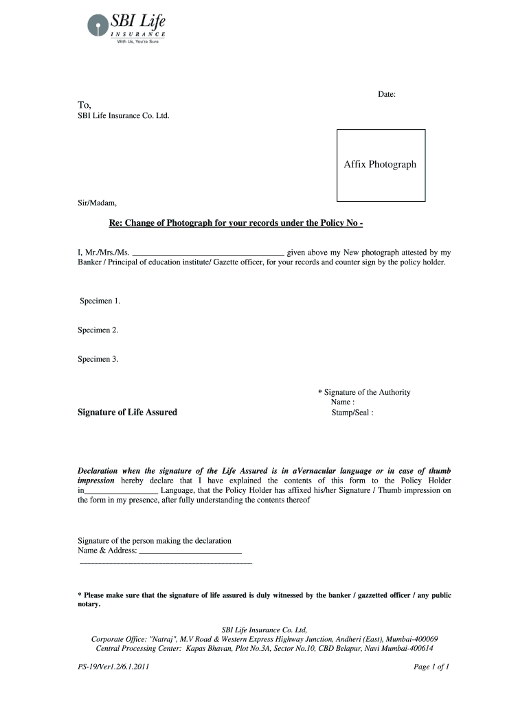 How to Sign or Notarize the SBI Life Insurance Photograph Change Form