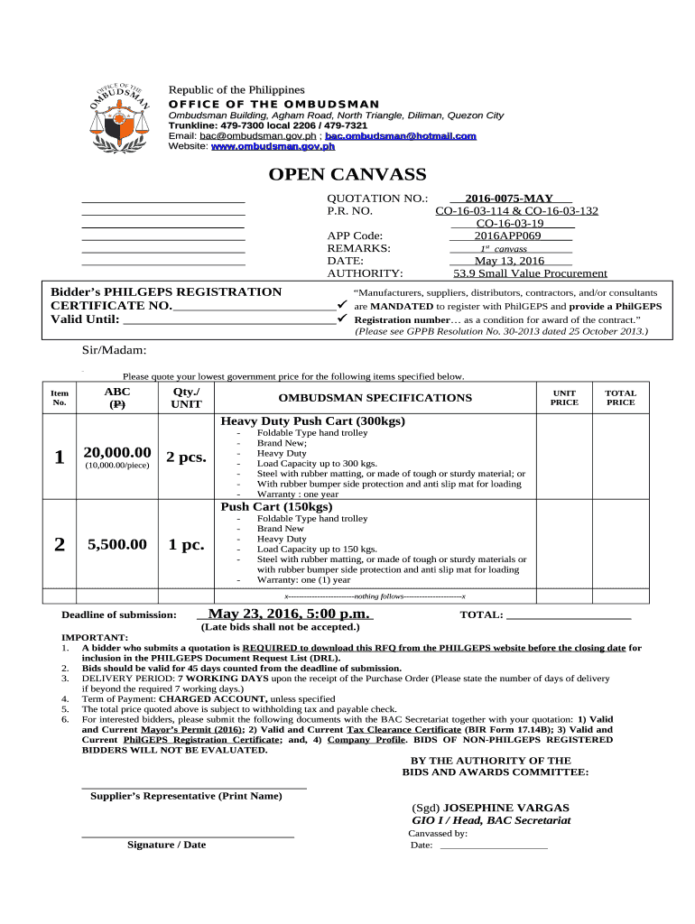 Republic of the Philippines OFFICE OF THE OMBUDSMAN Building, Afar Road, North Triangle, Dalian, Quezon City Trunk line: 4797300 local 2206 / 4797321 Email: BAC ombudsman.gov.pH ; BAC. Ombudsman Hotmail.website: