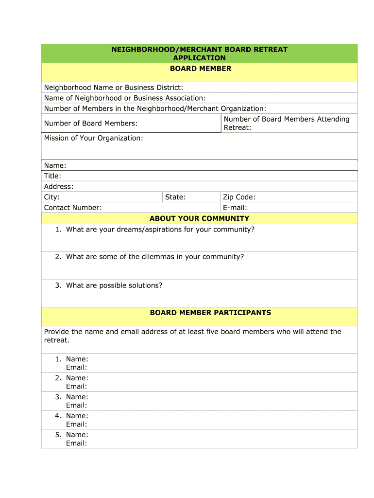 How to fill out neighborhoodmerchant board retreat application
