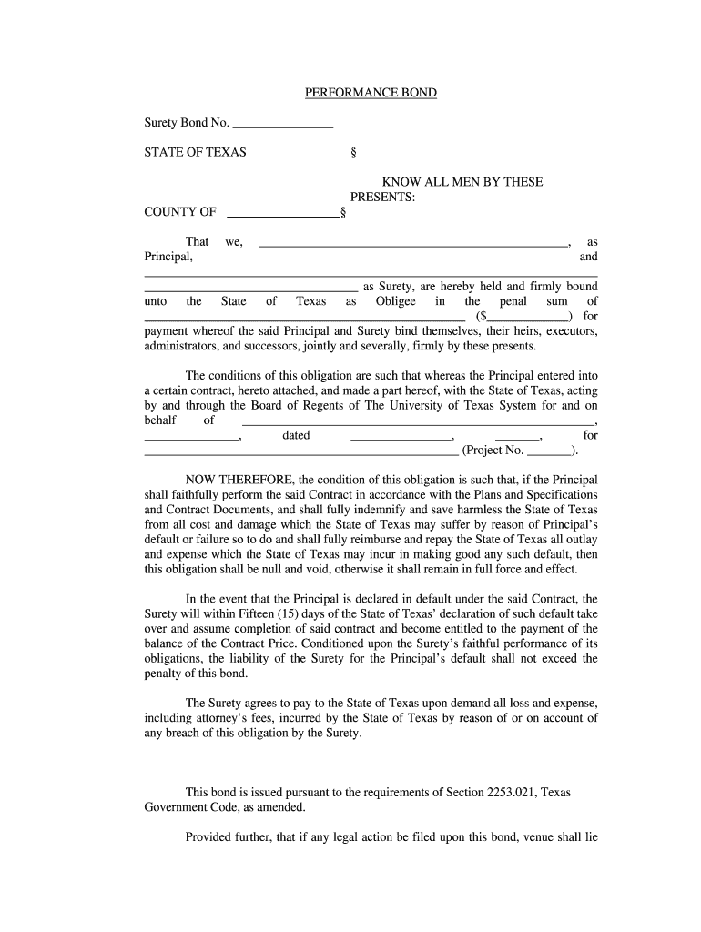 How to Fill Out the Texas Performance Bond and Payment Bond Online