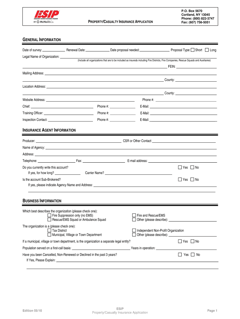 How to fill out the propertycasualty insurance application