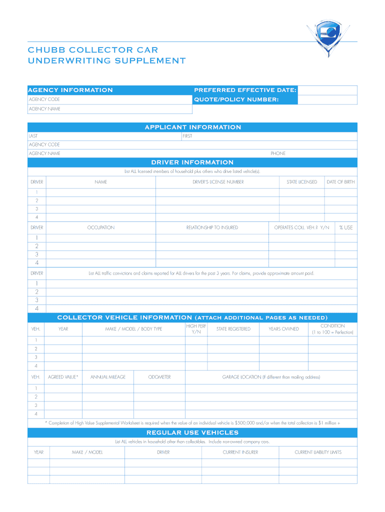 Get the free Chubb Collector Car Underwriting Supplement