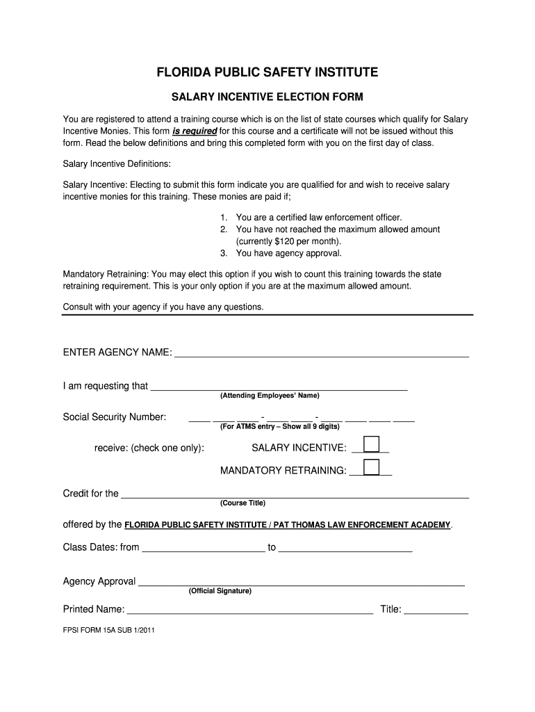 Access the Florida Public Safety Institute Salary Incentive Election Form from the official website.