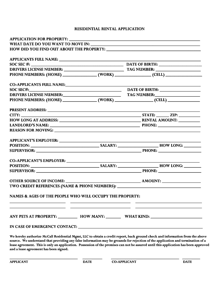 Deadlines for submitting the Residential Rental Application may vary by landlord or property management. It's best to submit your application as soon as possible to secure the rental property you desire.